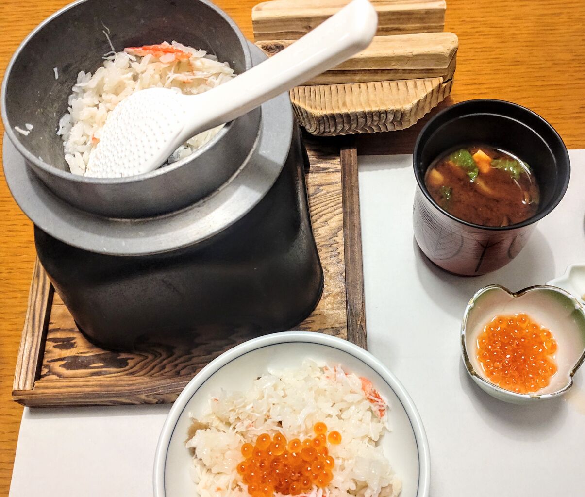 そして締めのカニ飯がやってきて、息も絶え絶えに完食まで漕ぎ着ける私。