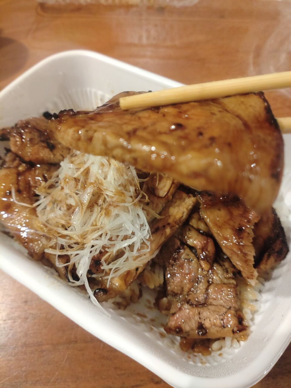 食べ尽くしの最後は、名物豚丼。宿で呑みながらノンビリ食べたかったのでテイクアウトにしました。