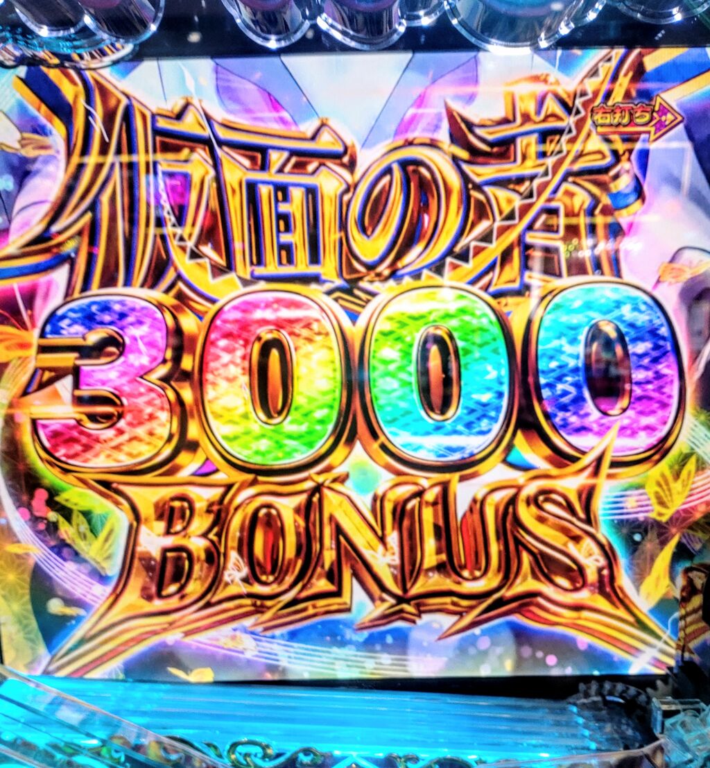 3000ボーナスに昇格する時は図柄が「7」に変化するんですが、すぐ次の演出に移っちゃうんで7図柄が3つ揃った所ってなかなか見れないんですよ。これ地味に不満です私w