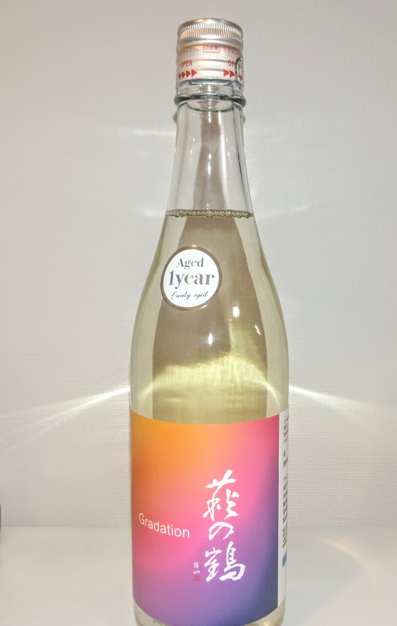 こちらは「萩の鶴」「メガネ専用」などで知られる地元の酒蔵「萩野酒造」さんの限定酒「萩の鶴Gradation Aged 1 year」でございます。